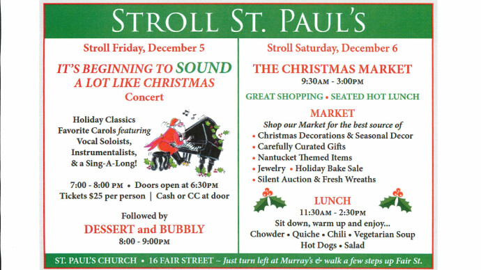 Our Christmas Market is typically held in Gardner Hall on the early December Saturday of Nantucket's Christmas Stroll. Once again, a variety of seasonal gifts and treasures are on sale and a hearty hot lunch is served.